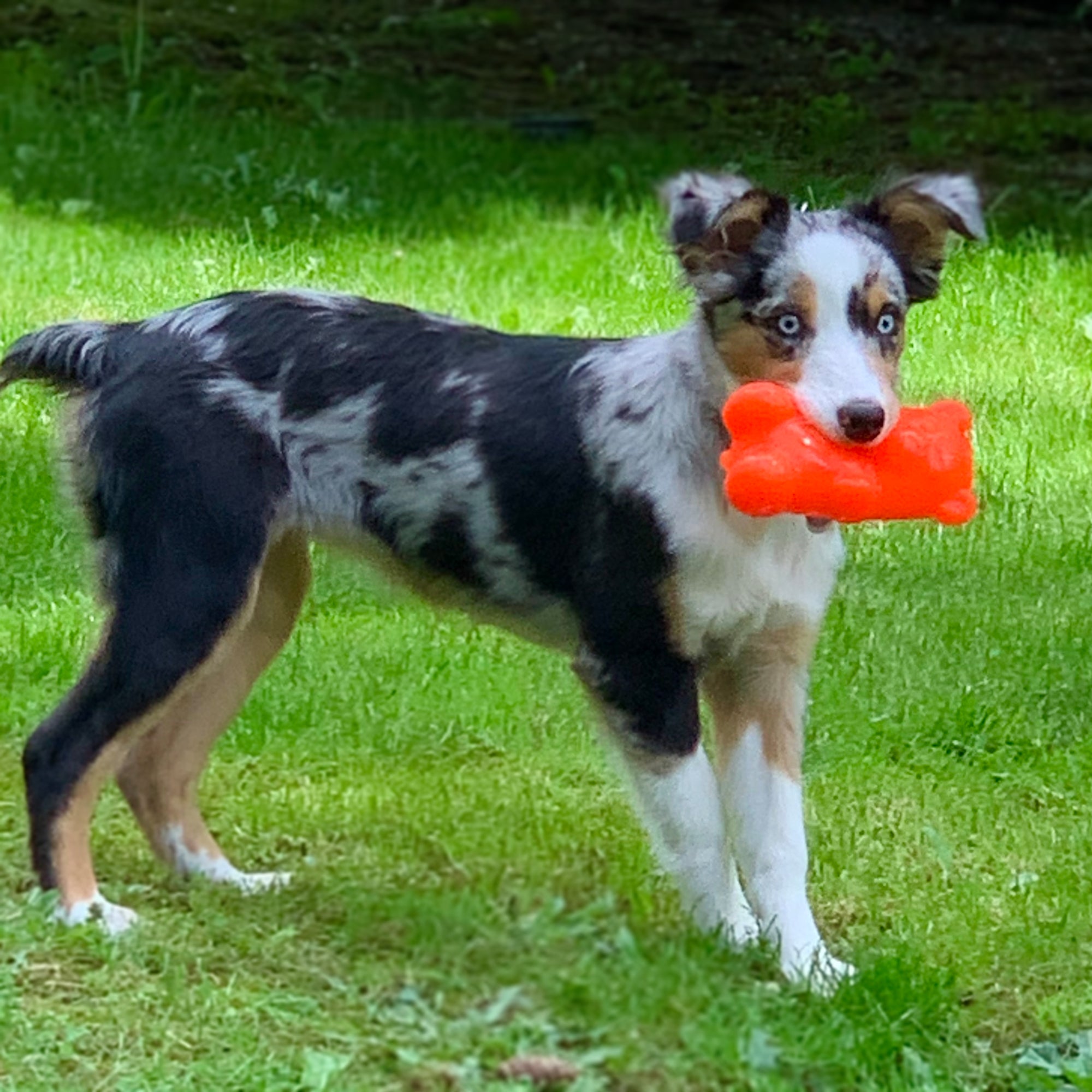 Ruff Dawg Gummy Bear retrieving toy is a cute bear-shaped toy that's treat-fillable. Weatherproof, washable, floats for water retrieval. High visibility Neon colors won't get lost in the grass or water. Gentle on teeth and gums. 100% Made safe in the USA of solid FDA-approved, recyclable rubber. Free of phthalates, latex, and BPAs.